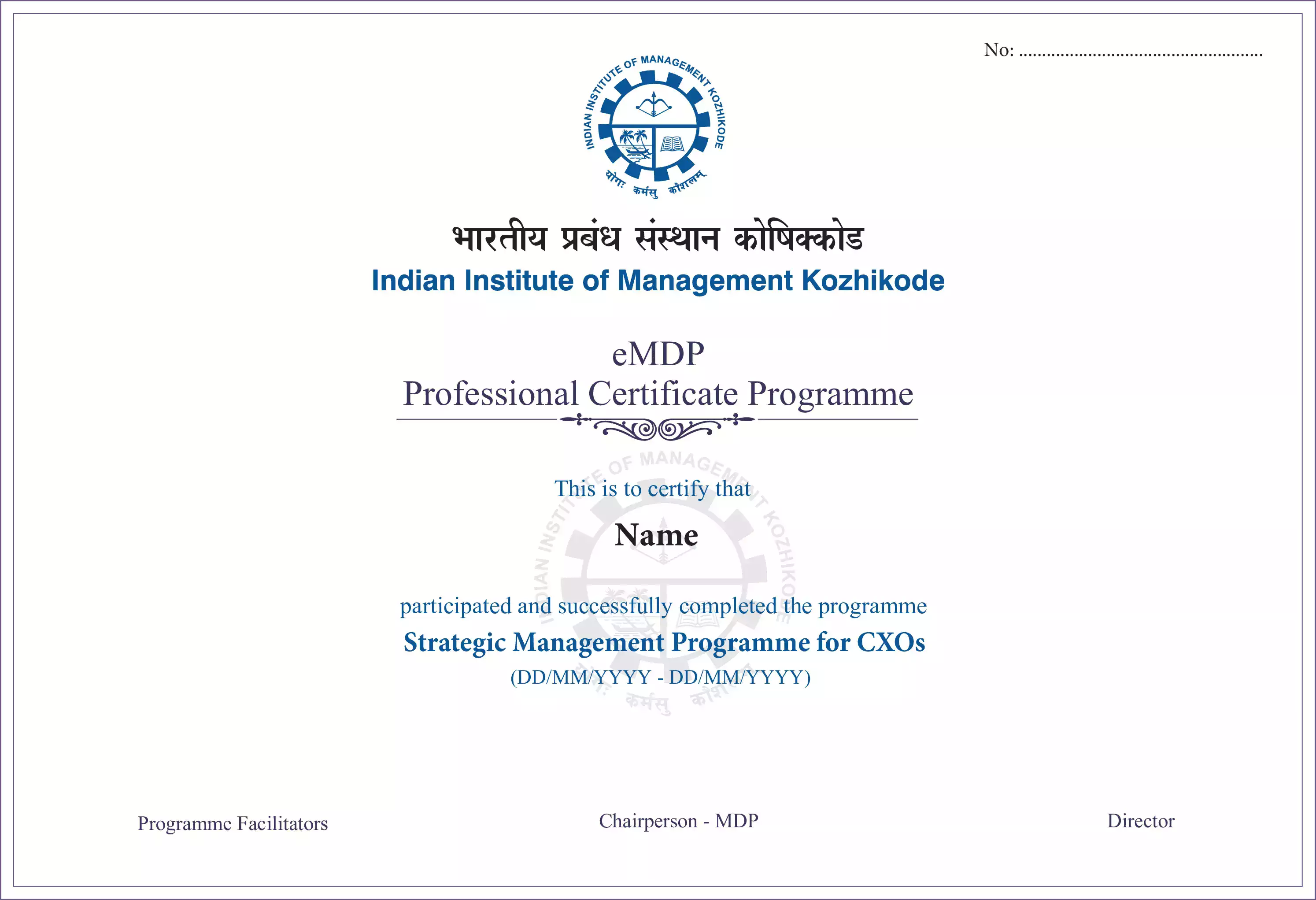 Note: All certificate images are for illustrative purposes only and may be subject to change at the discretion of IIM Kozhikode.